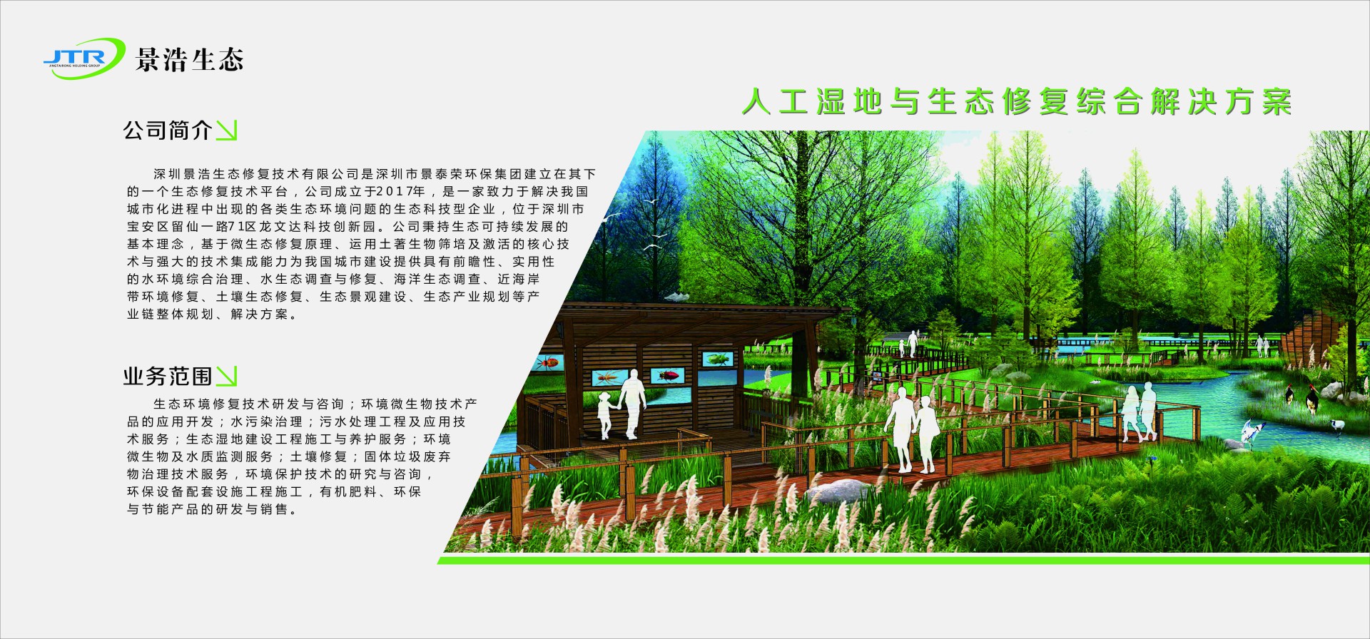 深圳景浩生態修復技術有限公司是深圳市景泰榮環保集團建立在其下的一個生態修復技術平臺,公司成立于2017年,是一家致力于解決我國城市化進程中出現的各類生態環境問題的生態科技型企業,位于深圳市寶安區留仙一路龍文達科技創新園內。公司秉持生態可持續發展的基本理念,基于微生態修復原理、運用土著生物篩培及激活的核心技術與強大的技術集成能力為我國城市建設提供具有前瞻性、實用性的水環境綜合治理、水生態調查與修復、海洋生態調查、近海岸帶環境修復、土壤生態修復、生態景觀建設、生態產業規劃等產業鏈整體規劃、解決方案......